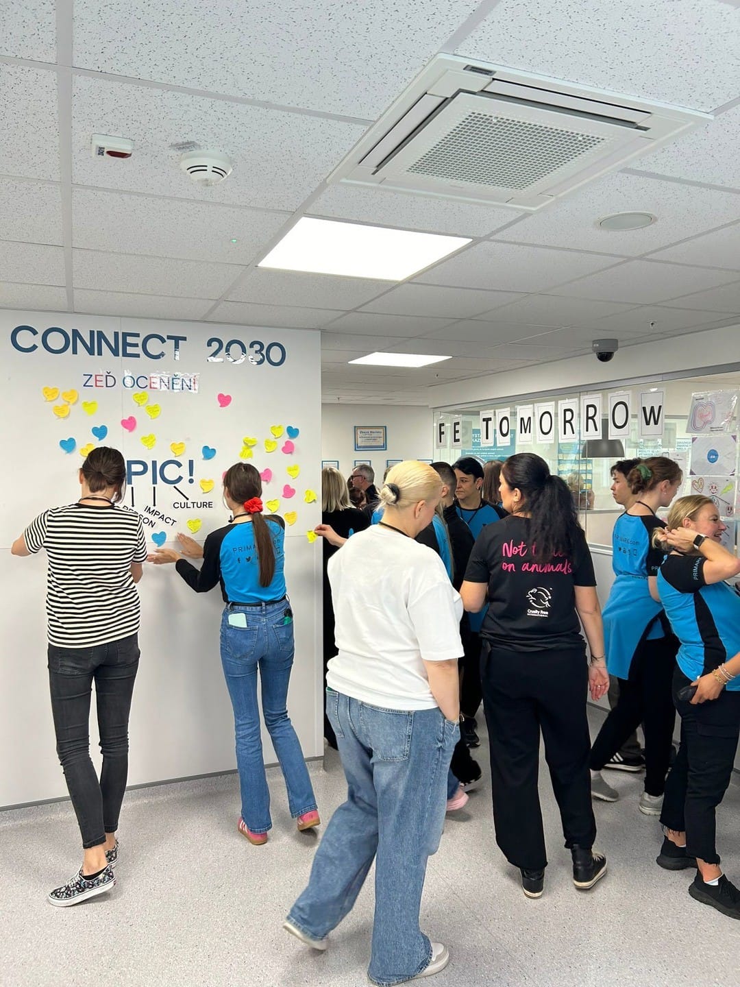 Každý si vyrobil srdíčko na výzdobu a potom jsme společně odhalili zeď, kde má každý obálku, do které mu/jí mohou ostatní napsat děkovný vzkaz.